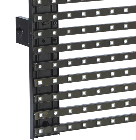 “条屏”系列显示屏使用轻质的铝材结构,平整、坚固而且耐用,其良好的透光性和简易快速的安装特点,已成为同类产品中的佼佼者。每一块单独的显示屏都配有电源、连接单元,数据分配和信号处理系统,每块都配有把手,方便且易于安装。